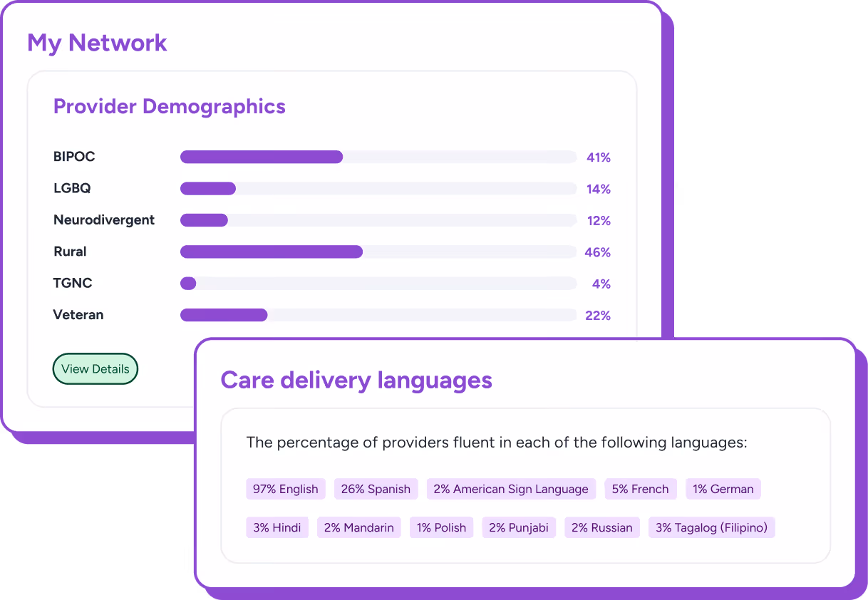 SOGI and REaL data is securely collected from providers during sign-up so you can better understand if your team reflects the communities you serve.