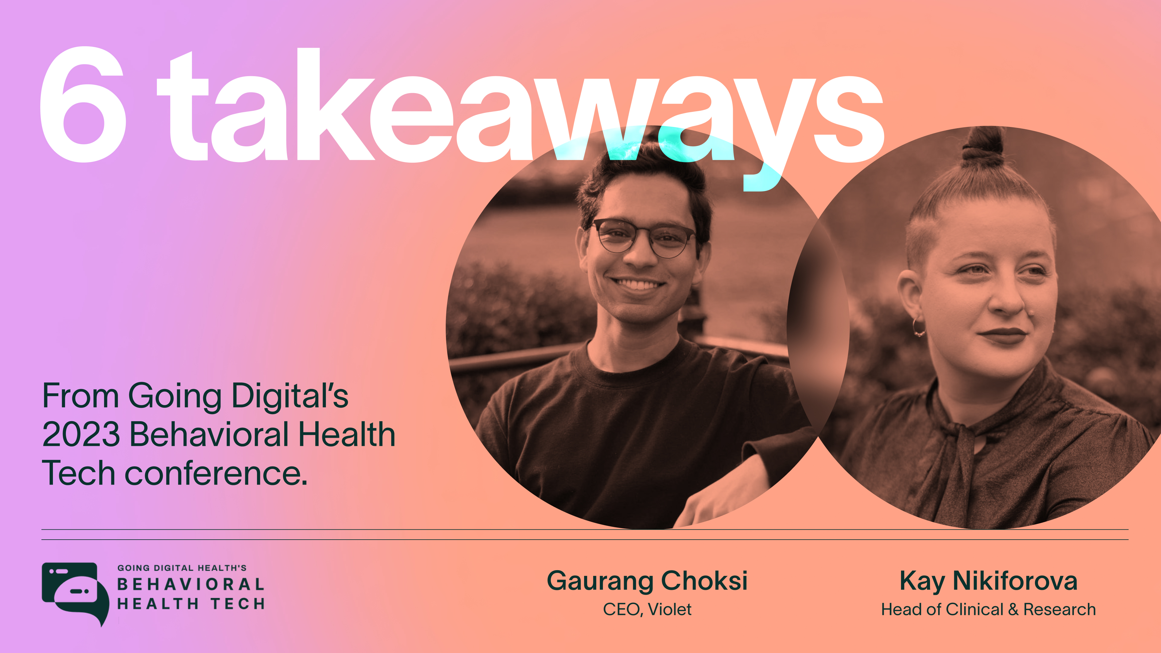 Gaurang Choksi, Violet Founder and CEO, and Kay Nikiforova, Head of Clinical and Research recently spoke at Going Digital’s 2023 Behavioral Health Tech conference in Phoenix, Arizona. BHT2023 is the largest conference focused on expanding access to mental health and substance use care through technology, and health equity, bringing together health plans, employers, behavioral health providers, digital health companies, investors and policy makers.
